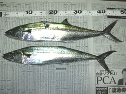 思いがけない走りの連続、尺サバ大漁。 良型アジが好調のようなので、夕方から。 しばらくすると、浮きが突然一気に沈み込み 巻き上げると強い引きと走り、サバ!! 周りでは良型アジも釣れているようでしたが、 なぜか私にはサバが多くかかるようでした。 早速サバは味噌煮にしていただきましたが、 アブラものって本当においしいものでした。 |
