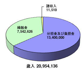 | 歳入のうち、分担金及び負担金は市町の負担金です。 歳出のうち、総務費は、総務管理費、地域振興一般管理費、広域計画策定推進費、市町職員共同研修費等です。 |
