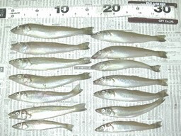 待ちに待った待望のハタハタが13匹。 今日は火力側防波堤で釣りましたが、温排側 |