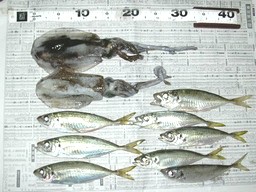 連夜の釣行で、自己記録タイ(32cm) 今年のアジは大漁。 |