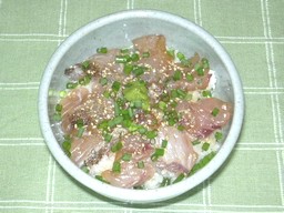 | マイワシの刺し身 | 釣り人の特権、青物の刺し身。 鮮度の落ちが早いし、釣期も短い。 回遊魚なので、釣れるときは一度に たくさん釣れることもありますが、 本当にラッキー。うれしい瞬間です。 まずは刺し身で。 なんといっても釣った時間帯も分かっ ているので、安心して食べられる。 とくに、脂ののったマイワシの刺し身 はまさに絶品です。酢味噌和えに すればまたまた箸がすすむ一品。 イナダの刺し身も釣った日と二日目で 違う食感が味わえます。 サバは味噌煮で。 定番ですが、「おいしい」という言葉が が似合う料理の一つだと思います。 コハダはままかりで。 塩でしめ、昆布をはった三杯酢に漬け れば、まさに「ご飯を借りにいく」ほど 食のすすむおいしさです。 青物の中でもサワラの刺し身はまさに 釣り人ならでは楽しみ。 船で釣れる70cmクラスはアブラも ノリノリで別物ですが、寒い時期に岸 から釣れる50cm前後のものもほど よくアブラがノリ、刺し身には最高。 なんといっても、釣ってから食べるまで 12時間以内の鮮度は絶品です。 どれも貴重な旬の味です。 |