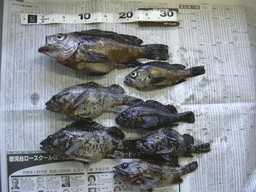 今年初めての離岸は夜釣り、根魚。 夜の7時頃からの釣り始めでしたが、1時間 を過ぎてもアタリもない厳しい状況でした。 ようやくメバルが釣れましたが、喰いが渋い のかアタリも分かりにくく、しかも単発。 その後、カサゴ、それに30cmのクロソイ。 釣果は予想よりは少ないものでしたが、浮き がスゥーと沈む瞬間はやはりうれしいもの。 刺し身に煮付けに味噌汁、楽しみです。 |